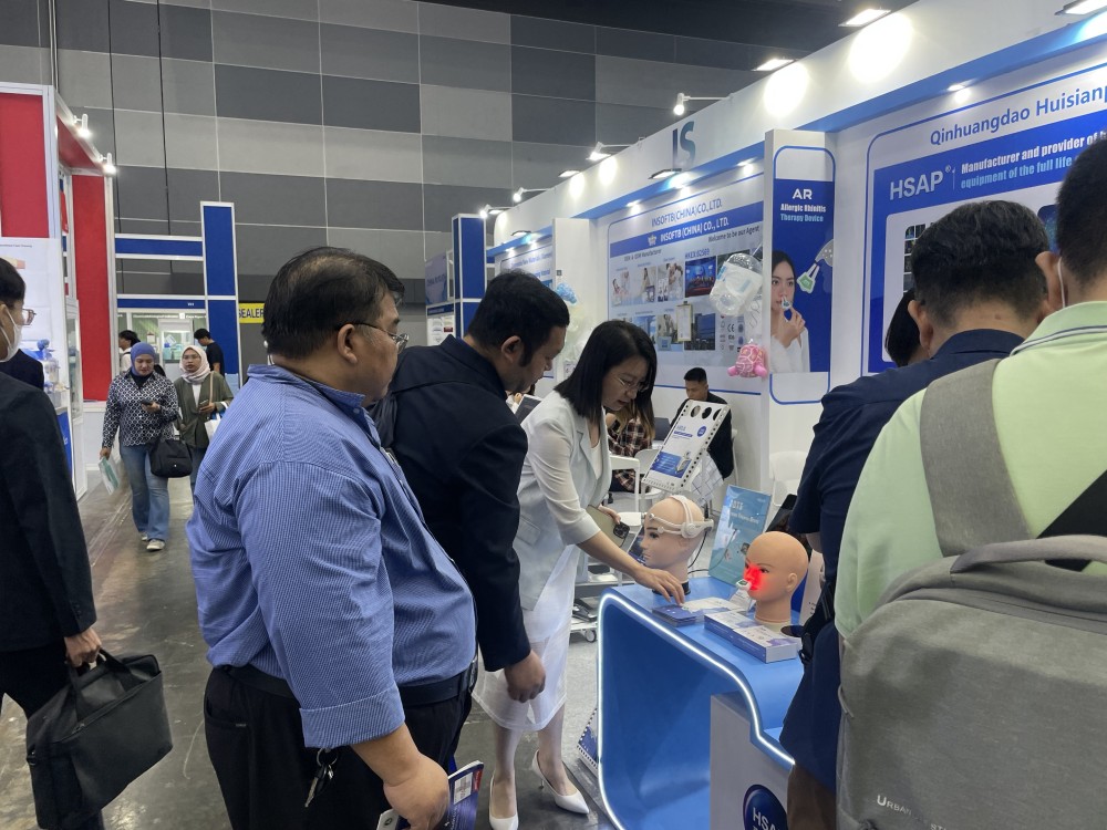 此次展會中,惠斯安普攜多款核心明星產(chǎn)品重磅亮相,包括具備精準(zhǔn)健康篩查能力的健康風(fēng)險(xiǎn)評估系統(tǒng)、專注微循環(huán)改善的脈沖磁微循環(huán)治療系統(tǒng),以及針對認(rèn)知功能提升的記憶力障礙訓(xùn)練儀。憑借先進(jìn)的技術(shù)原理、貼合臨床需求的產(chǎn)品設(shè)計(jì)與顯著的應(yīng)用效果,惠斯安普展臺自開展首日便成為全場焦點(diǎn),吸引了來自泰國、馬來西亞、菲律賓、新加坡、印度、澳大利亞等多個(gè)國家的醫(yī)療從業(yè)者、機(jī)構(gòu)代表,采購商的駐足觀摩。工作人員圍繞產(chǎn)品功能、臨床案例與合作模式展開詳細(xì)講解,現(xiàn)場咨詢氛圍熱烈。