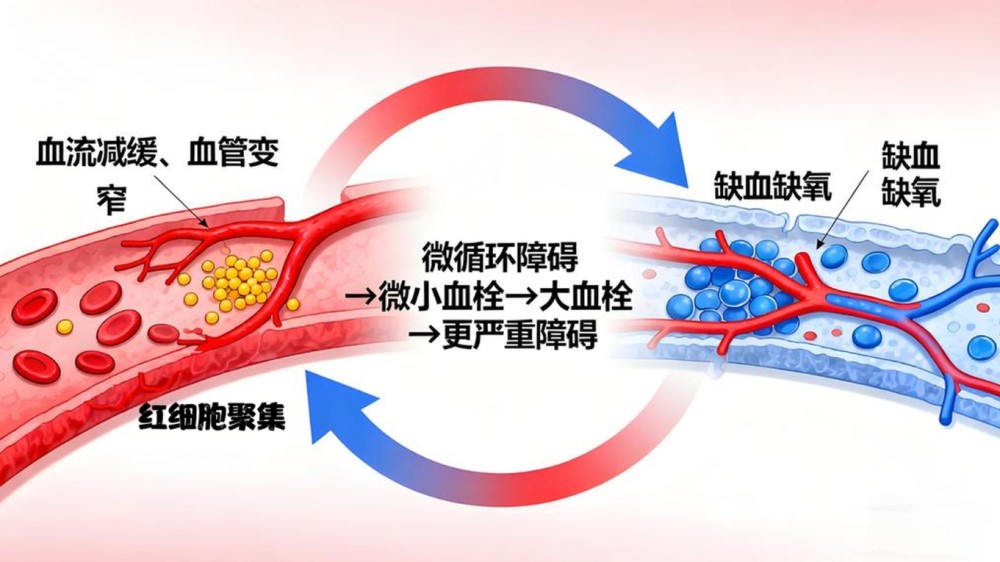 血栓會(huì)加劇微循環(huán)惡化:一旦血栓形成,即使是微小血栓,也會(huì)堵塞毛細(xì)血管,導(dǎo)致局部組織細(xì)胞缺血缺氧;而組織缺氧又會(huì)進(jìn)一步收縮血管、減緩血流,形成 “微循環(huán)障礙→血栓→更嚴(yán)重障礙” 的惡性循環(huán),加速血管老化與疾病進(jìn)展。