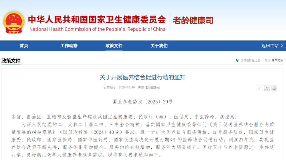 隨著人口老齡化程度的持續(xù)加深,老年人對(duì)健康養(yǎng)老的需求日益多元且迫切,傳統(tǒng)養(yǎng)老模式中醫(yī)療與養(yǎng)老資源割裂、服務(wù)響應(yīng)滯后等問(wèn)題逐漸凸顯。醫(yī)養(yǎng)結(jié)合促進(jìn)行動(dòng)的開展,為行業(yè)發(fā)展指明了方向,而科技賦能則成為推動(dòng)醫(yī)療與養(yǎng)老資源深度融合的關(guān)鍵抓手。